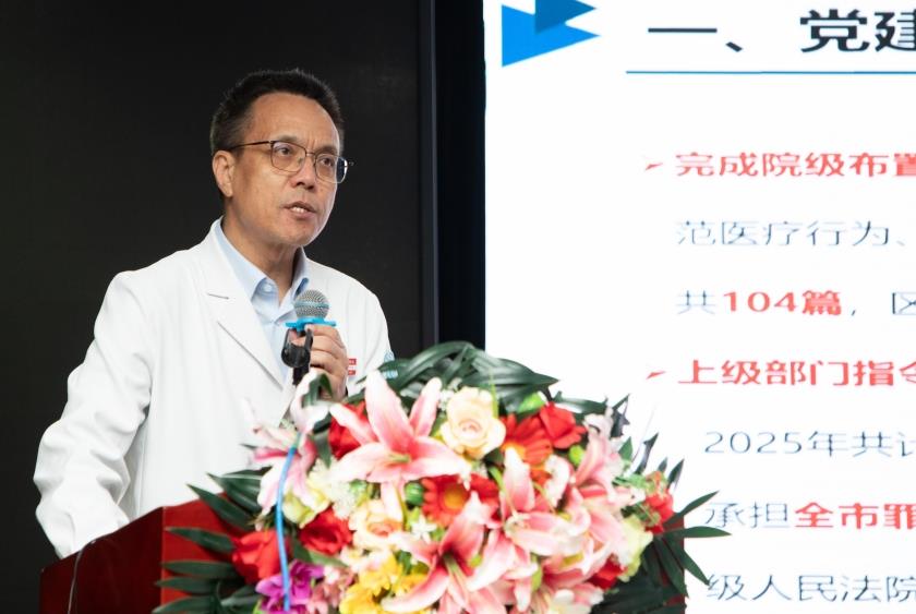 会上,佘军军院长代表医院领导班子作了2025年度整体工作报告,紧扣国家医改部署与区域医疗健康发展需求,围绕医院发展战略和十大功能定位进行了系统阐述,重点包括深化医改落地、构建区域危重症转诊与会诊体系、推进临床科研创新与技术应用等内容,同时也梳理了医务人员梯队建设、基层医疗帮扶、后勤保障与绿色管理等方面的工作,全面总结了年度工作进展、成效亮点与存在的不足。同时,医院将紧扣高质量发展主线,对照十大功能定位目标要求,着力补齐短板、做强特色,持续深化医改实践,不断提升医疗服务能力,激发科研创新活力,努力将医院建设成为全国示范的高水平国家区域医疗中心。