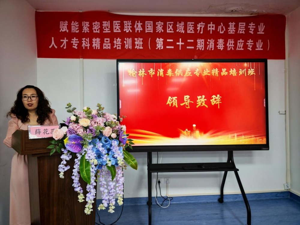 交大一附院榆林医院科教科副科长薛花蕊在讲话中指出,消毒供应中心是医院感染防控与医疗安全的关键防线,其工作质量直接决定医疗安全底线、关乎患者生命健康。本次活动是提升区域医疗服务同质化水平的重要抓手,希望学员们通过系统培训,切实强化专业理论素养、精进实操技能,为榆林地区医疗卫生事业高质量发展注入更多力量。