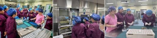 实操培训围绕消毒供应中心核心工作流程展开,培训先根据人数与场地分组,保障学员操作空间与指导机会;随后围绕“器械清洗—检查—包装—灭菌—储存发放”全流程组织演练,从清洗剂选择、器械完整性判断,到包装密封、灭菌参数设定,再到分类存放,要求学员全程实操,覆盖工作全链条。经验丰富的带教老师全程驻组指导,即时纠正学员操作偏差,如器械摆放不规范、包装密封不严等问题,并讲解正确要点。针对学员提出的特殊材质器械清洗、灭菌后器械返潮排查等日常难题,老师结合实操场景现场分析演示,助力学员解决问题。通过反复练习与精准指导,学员统一操作标准、规范手法,成功破解多项工作难题,实操技能显著提升,实现“理论与实践无缝衔接”“学完能用、用能见效”的培训目标。