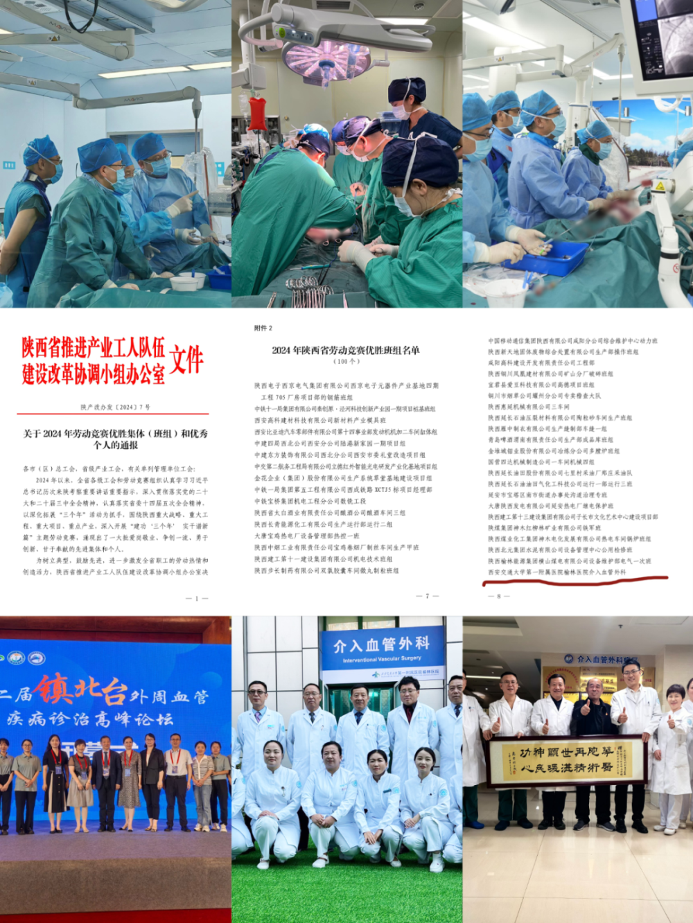 近日,陕西省推进产业工人队伍建设改革协调小组办公室发布了《关于2024年劳动竞赛优胜集体(班组)和优秀个人的通报》。交大一附院榆林医院介入血管外科在医疗服务、技术创新和团队协作方面取得的显著成就,被授予陕西省2024年劳动竞赛优胜班组称号。