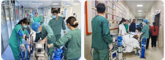 在医护团队默契配合下,VV-ECMO快速上机,随着机器启动,患者血液通过管路从体内引出,流经机器上“膜肺”发挥呼吸支持作用,暗红色血液再次变为鲜红色,重新输入患者体内。患者外周血氧饱和度迅速改善,VV-ECMO成功运转,有效缓解了患者的呼吸衰竭症状,为后续治疗赢得宝贵时间。