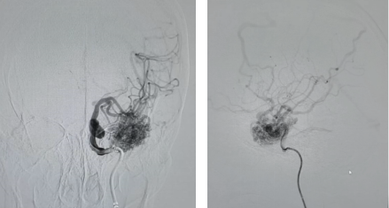 术中,在纪文军主任医师、张伟副主任医师、李涛副主任医师、赵乐副主任医师及麻醉手术科团队的紧密协作下,成功对王女士脑中的动静脉畸形多支供血血管进行了栓塞。手术历时两个多小时,顺利完成。术后复查脑血管造影显示,颅内动静脉畸形已完全栓塞。后期经过神经外科二病区医护团队精心的康复治疗与护理,王女士恢复良好,意识清晰,已能正常生活和工作。