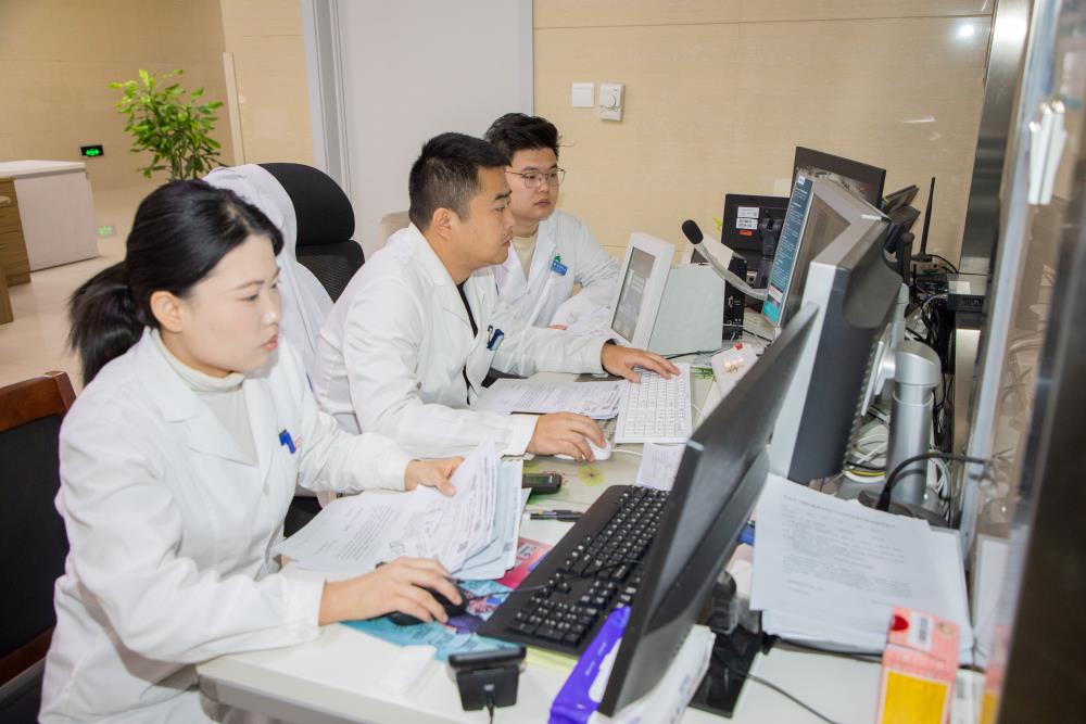 影像学检查是接诊医生评估患者病情最为主要且直接的手段之一,节后其需求量同样呈现出大幅增长的态势。2 月 5 日,交大一附院榆林医院影像中心 CT 室单日检查人次达到 849 人,创下历史新高。由于需要进行增强扫描、CTA 检查的患者较多,科室紧急额外开通 2 台 CT 专门用于增强扫描检查。