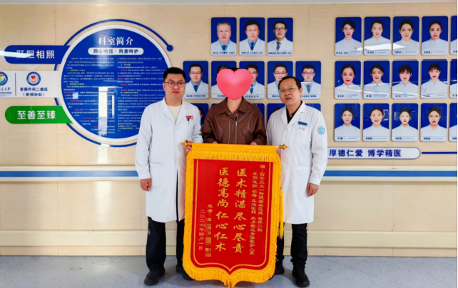 从求医无门到重获健康,患者及家属难掩激动之情,出院之际特地送来一面锦旗,向给予第二次生命的医护团队表达最深切的谢意。