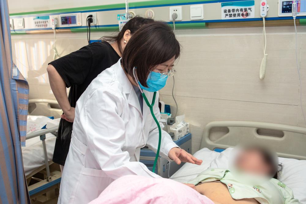 查房前,由消化内科孙洋副主任医师、常浩腾主治医师分别汇报患者的病史、入院化验检查结果及基本治疗情况。在查房过程中,韩英教授详细询问患者的发病情况,并进行专业的查体。