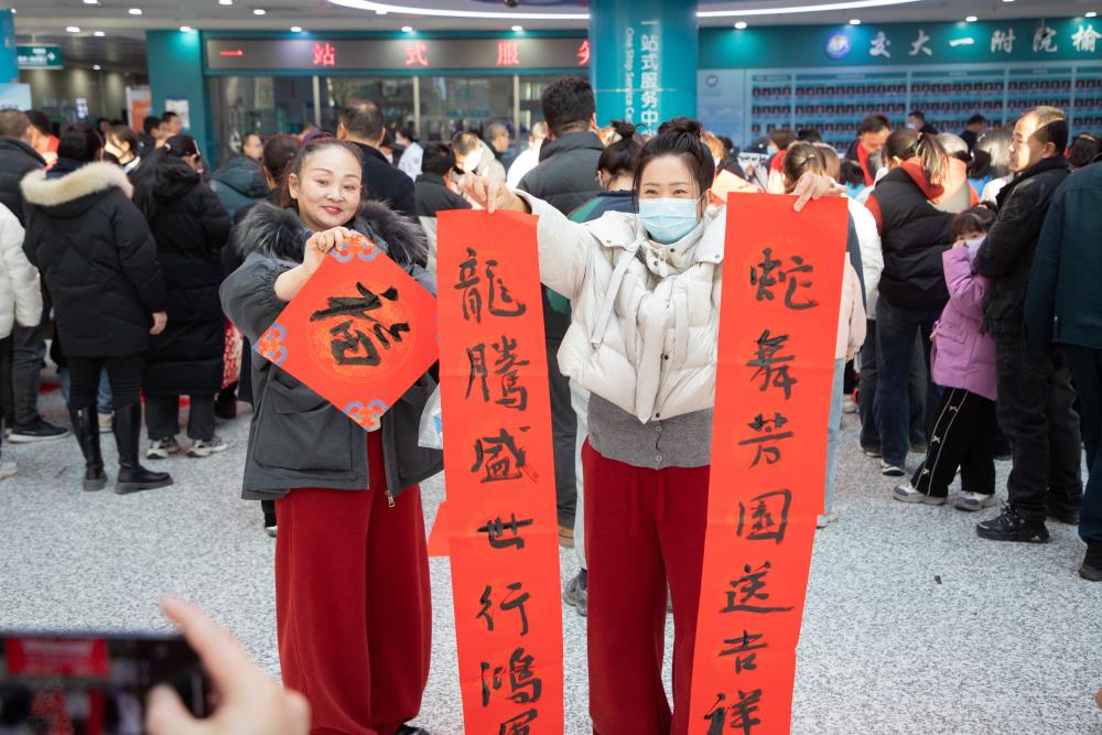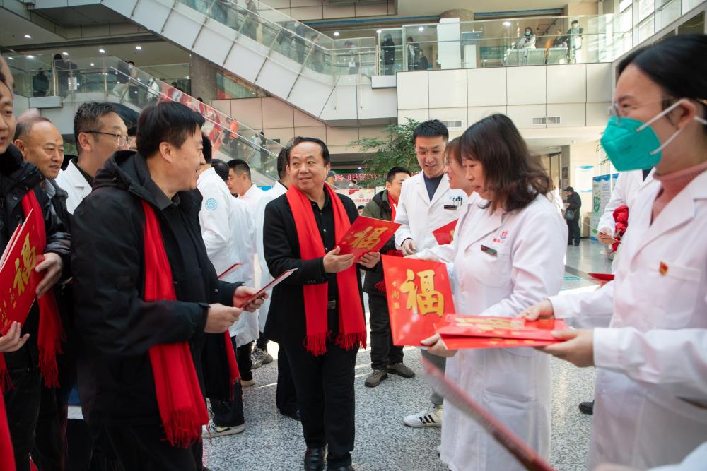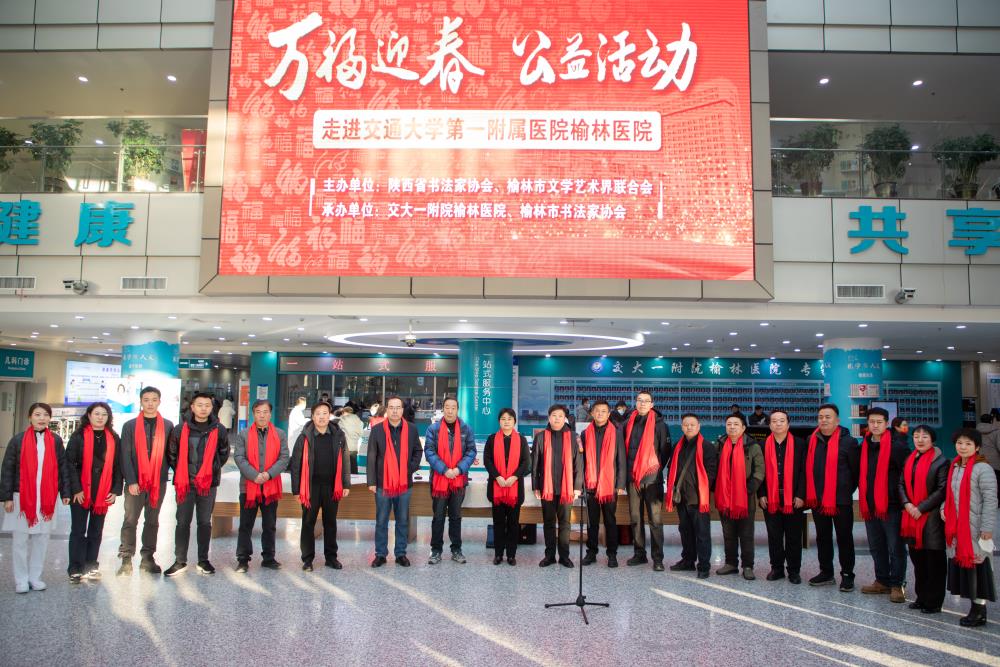 为大力弘扬中华优秀传统文化,营造欢乐吉祥、文明和谐的节日氛围,1月22日,由陕西省书法家协会、榆林市文学艺术界联合会主办,交大一附院榆林医院、榆林市书法家协会承办的“万福迎春”书法公益活动在交大一附院榆林医院门诊大厅举办。交大一附院榆林医院党委副书记刘烨、工会主席谢中斌,中国书法家协会、陕西省书法家协会的多位书法家,交大一附院榆林医院退休职工及职工子弟受邀出席活动,用墨香为大家送上新年的祝福。