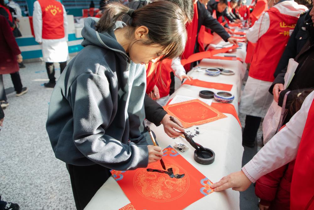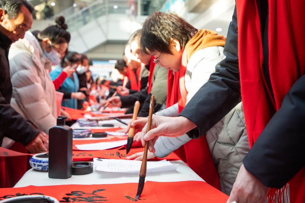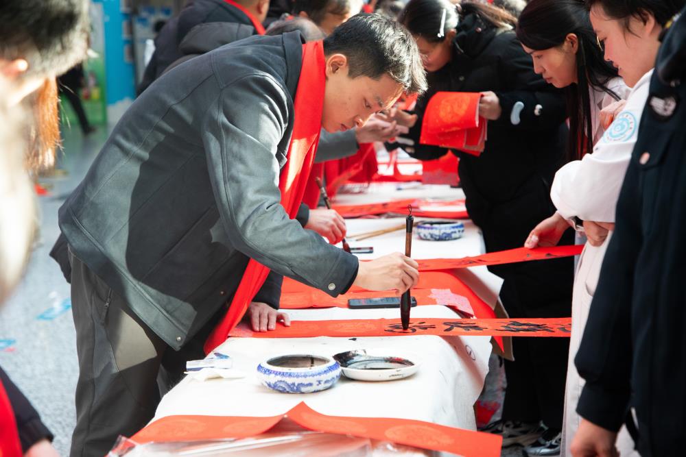 活动现场,大家饱含创作热情,铺纸、蘸墨、起笔、收笔,一气呵成。一幅幅笔锋刚劲有力、字迹飘逸洒脱的春联和“福”字跃然纸上。一副副寓意吉祥的经典春联,寄托着人们对新年的美好憧憬。前来参与活动的群众络绎不绝,他们围在书法家身边,或仔细欣赏书法创作过程,或精心挑选自己心仪的春联内容。不少小朋友也在家长的带领下,饶有兴致地观看书法家们书写,感受书法艺术的独特魅力。现场共撰写春联1000余副,赠送300副。