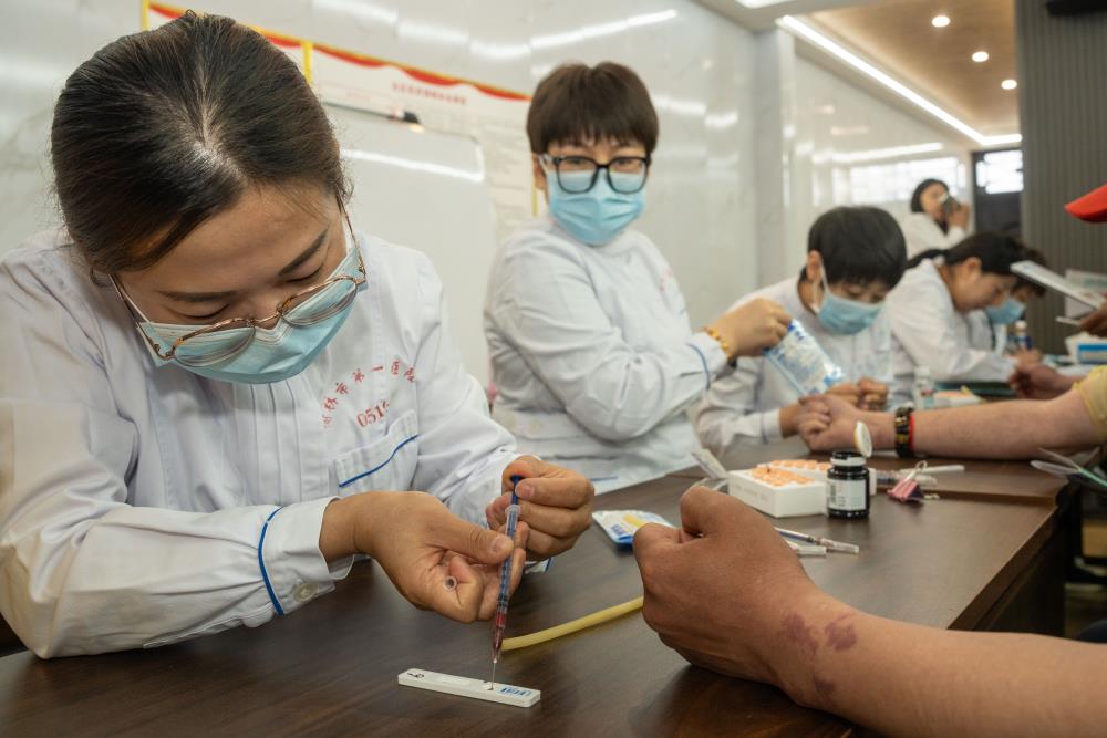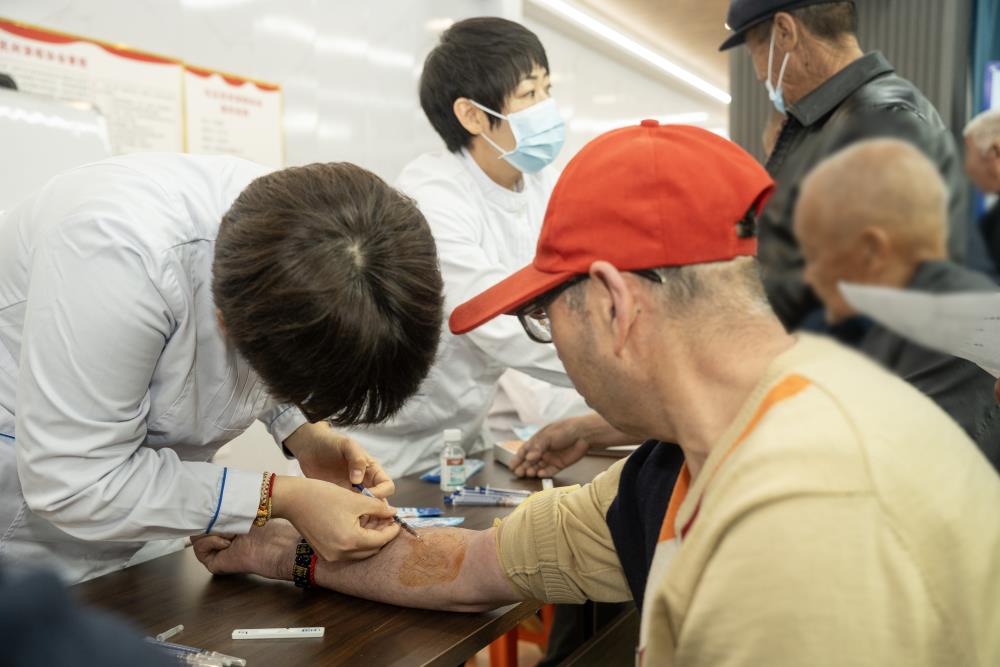 副护士长张海燕带领护理团队,组织参加义诊的老年男性朋友们,有条不紊的排队抽血测PSA,做泌尿系B超检查。快速前列腺肿瘤指标(PSA)检测,通过静脉采血滴在试纸条上,15分钟左右结果就能显示出来,简单又快捷。前列腺特异性抗原(PSA)是前列腺癌敏感、应用广泛的肿瘤标志物,通过基于前列腺特异性抗原(PSA)的前列腺筛查,对于高危人群能够有效的提高早期癌症检出率,提高前列腺癌的治疗效果,降低病死率,改善患者生存质量,延长生存时间。