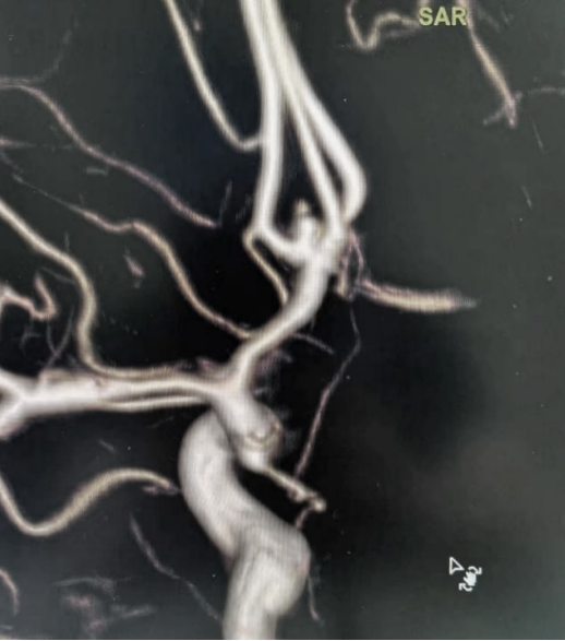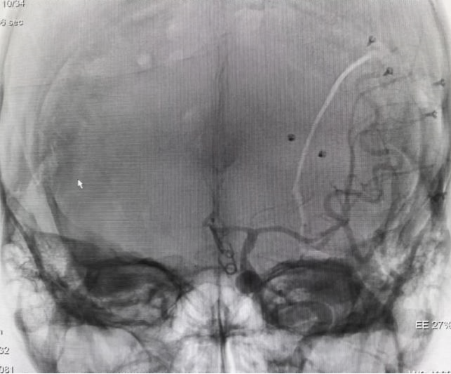 制定好手术方案后,在纪文军主任医师、杜彦挺副主任医师、张伟副主任医师、李涛副主任医师及全科室医护人员的通力合作下,通过近4个小时的努力,为患者精准夹闭颅内动脉瘤。