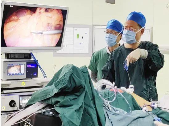 佘军军院长及其普通外科一病区手术团队通过术中腹腔镜,将另一枚磁环与预标记的钛夹磁体复合体相互吸引,从而准确标记预切部位,将磁体与离体标本一同取出体外,成功完成手术。术后,切除标本上下切缘阴性。患者无不适情况,现已康复出院。