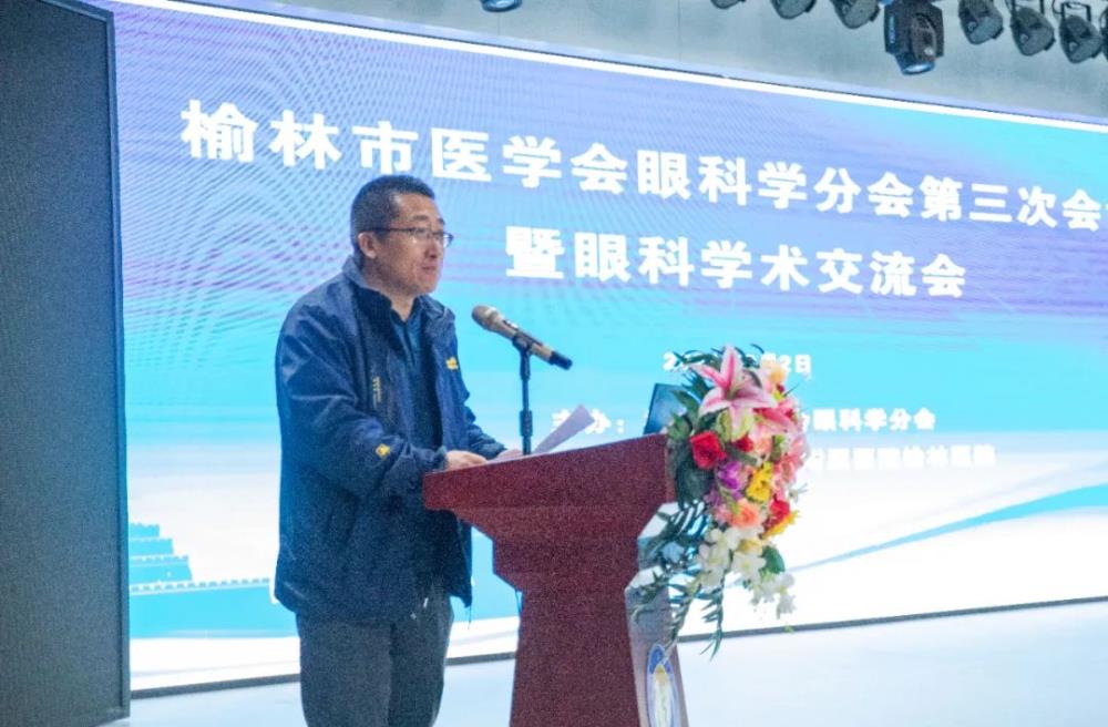 西安交大一附院副院长、榆林医院执行院长佘军军在致辞中介绍了西安交大一附院榆林医院基本情况、眼科发展现状,及国家区域医疗中心的建设进展情况。希望与会同仁通过此次大会,互相学习,开拓视野,增进友谊,共同进步,为榆林市医疗事业做出新的贡献。