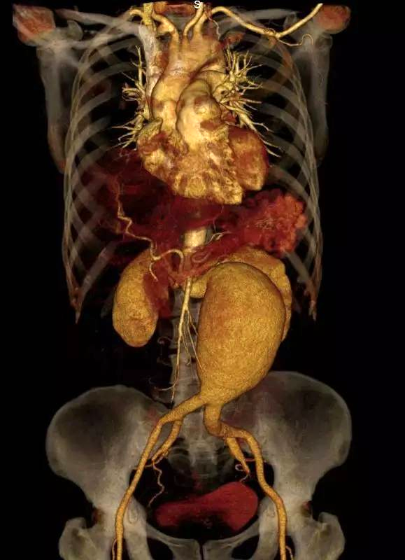 据介绍,腹主动脉瘤是由于老化、损伤或者其他原因,使得腹主动脉壁不再牢靠并导致主动脉膨胀扩张,由“直型水管”样的血管变成了鼓起的“气球”。扩张到了一定程度,“气球”承受不住压力,就会发生破裂。破裂腹主动脉瘤的抢救成功率不到50%,极其凶险。由于腹主动脉瘤在腹部深处,周围组织疏松柔软,所以早期很难发现症状。当动脉瘤将破裂时,则会引起腹部或背部剧烈疼痛、晕厥、腿脚无力等症状。曾有位70多岁的患者腹主动脉瘤破裂,却因种种原因,发病后未得到及时救治,被家属发现送到当地医院,待紧急转诊时,腹主动脉瘤已彻底破裂,转瞬间血压和呼吸就测不到了,终回天乏力。