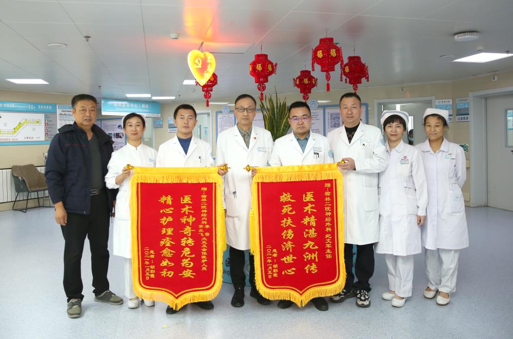 经过紧张救治,纪文军博士团队成功在40分钟之内顺利取出血栓,打通血管梗塞部位,挽救了患者的生命和神经功能。因抢救及时,术后胡某恢复良好,神志清醒,肢体肌力已基本恢复正常,宣告了本次手术圆满成功。