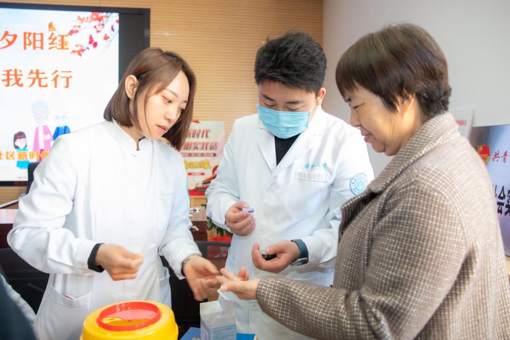 西安交大一附院肾病内科郝大鹏教授参与义诊活动,同肾病内科医护人员一起为居民讲解改善肾脏疾患的新理论知识,仔细倾听群众提问,耐心地解答群众的健康咨询,对有症状的群众详细询问病情、病史,进行耐心细致地分析,给予患者及家属健康指导,给予科学的诊疗建议和治疗方案。同时,为群众免费进行血压监测、监测血糖。