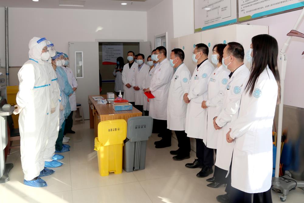 每到一处,院领导都与大家亲切交谈,向他们致以新春的问候。感谢大家一年来在疫情防控工作中付出的艰辛努力和取得的突出成绩,感谢大家在节日期间恪尽职守、任劳任怨。鼓励大家在新的一年再开新局,再立新功。叮嘱大家要做好个人防护,克服麻痹思想,不折不扣做好疫情防控相关工作,为全市人民过上一个欢乐祥和、健康平安的春节提供医疗保障。同时,院领导对春节期间疫情防控工作落实情况进行了督导检查。
