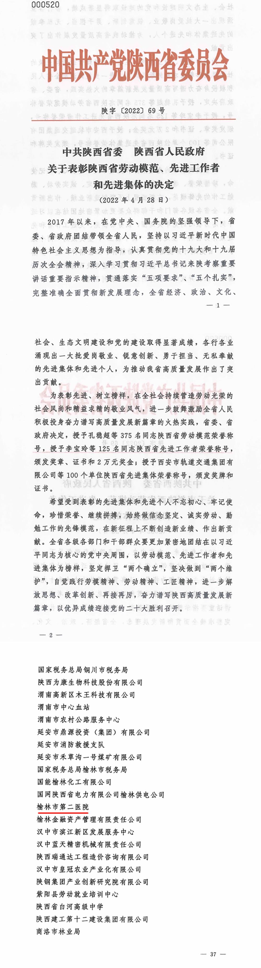 4月29日上午,2022年陕西省庆祝“五一”国际劳动节暨省劳动模范先进工作者和先进集体表彰大会召开。会上,对375名“陕西省劳动模范”, 125名“先进工作者”, 100个“陕西省先进集体”进行表彰,榆林市第二医院荣获陕西省先进集体荣誉称号,成为全市卫健系统唯一获此荣誉的单位。