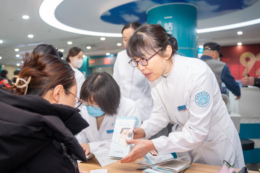 妇科郭玉琳主任、贺锦丽副护士长,产科刘继梅副主任、姜小菊护士长,内分泌科李兴梅副主任、师福香护士长,皮肤科王应权主任、马彬溪医生、慕玉萍医生在门诊大厅一楼开展健康科普及义诊活动,为妇女群众提供检查报告解读、用药指导建议、疾病答疑等健康服务,引导妇女树立健康观念,培养健康行为,提高身体素养。