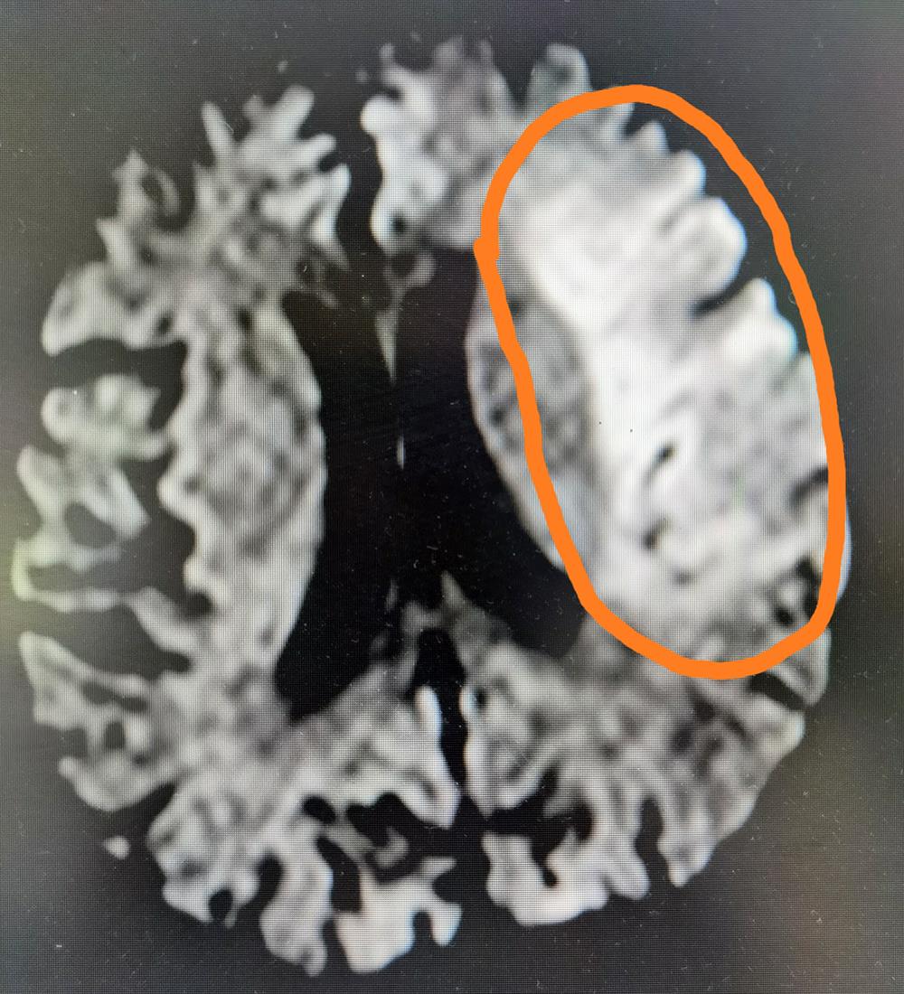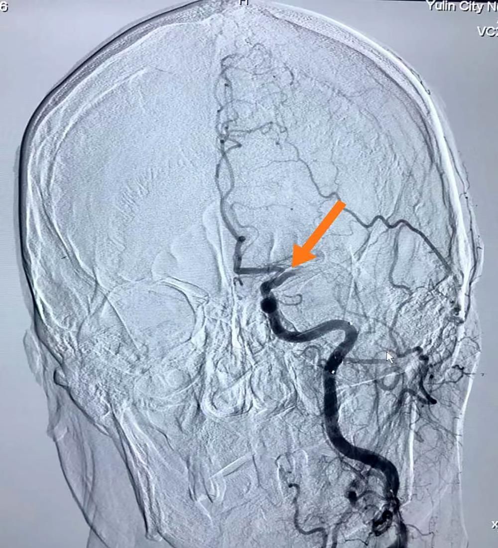 今年54岁的男性患者因突发意识不清、烦躁、完全不能言语、右侧肢体偏瘫,被工友发现后紧急从单位送来榆林二院求诊。在卒中中心诊查后急行头颅影像检查,发现该患者左侧大面积脑梗死,右侧大面积脑软化灶,因其意识不清,烦躁,核磁血管检查不能配合,紧急收住脑科医院神经内科一病区进行救治。