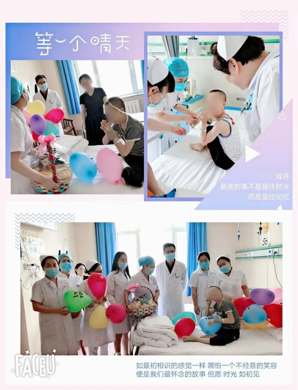 儿科团队用爱关心每一个患儿,帮助了一个又一个家庭,用行动诠释了“幼吾幼以及人之幼”的深切内涵。13岁的小文(化名)确诊21-三体综合征已有10年,后又在我院确诊急性淋巴细胞白血病,因家庭及患儿自身原因放弃化疗及骨髓干细胞移植等治疗,间断在我科住院4次,每次都靠输注血小板及红细胞悬液来维持生命!为了让小文能坚持接受治疗,儿科的医护人员为小文进行了捐款,并送去了果篮,鼓励家长不要轻言放弃。面对这个命途多舛的孩子,儿科的医护人员总是尽可能逗他开心、让他忘记病痛,小文每次做治疗前总是害怕恐惧,不肯配合,护士们就会用童话故事,玩偶等吸引他的注意力,安抚小文的情绪。