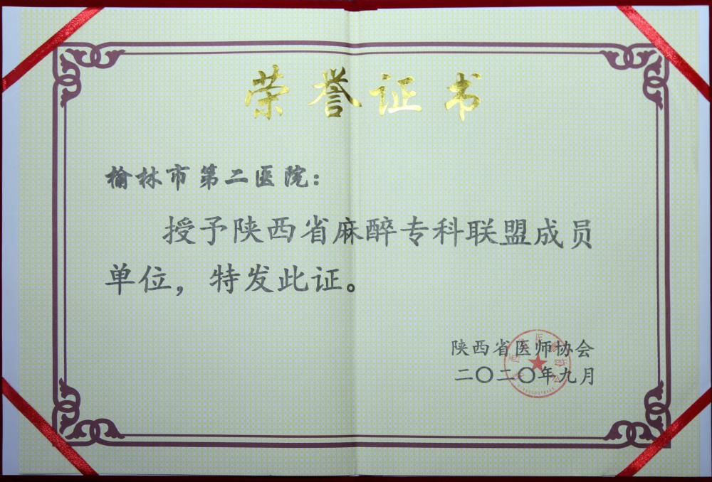 9月18日-9月20日,由陕西省医师协会、陕西省医师协会麻醉科医师分会主办的2020陕西省医师协会麻醉科医师分会学术年会在西安市召开。会上,由中国医师协会麻醉学分会,陕西省医师协会牵头成立“陕西省麻醉专科联盟”,榆林二院正式成为“陕西省麻醉专科联盟”十三家成员单位,也是我市唯一一家专科联盟成员单位。