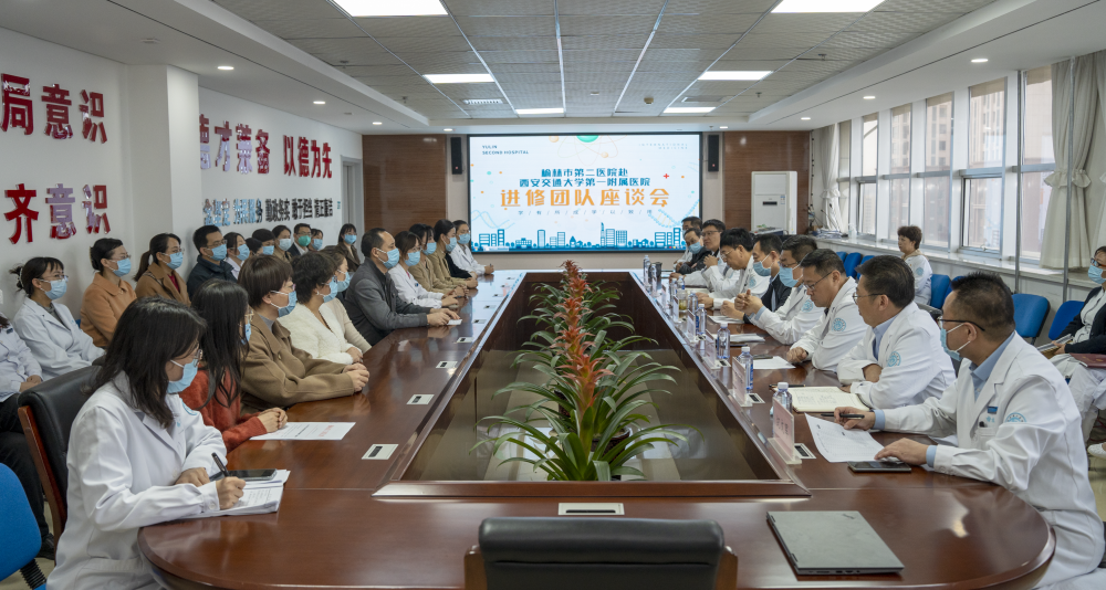 2022年11月8日下午,医院召开赴西安交通大学第一附属医院进修团队座谈会。西安交通大学第一附属医院罗俊教授,榆林二院院长贺波,党委书记赵文玉,副院长张哲、李明军、白万祥,院务委员赵广裕、纪文军,相关行政职能科室和临床医技科室主任、护士长及19名进修业务骨干等参加座谈会。