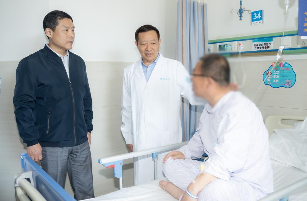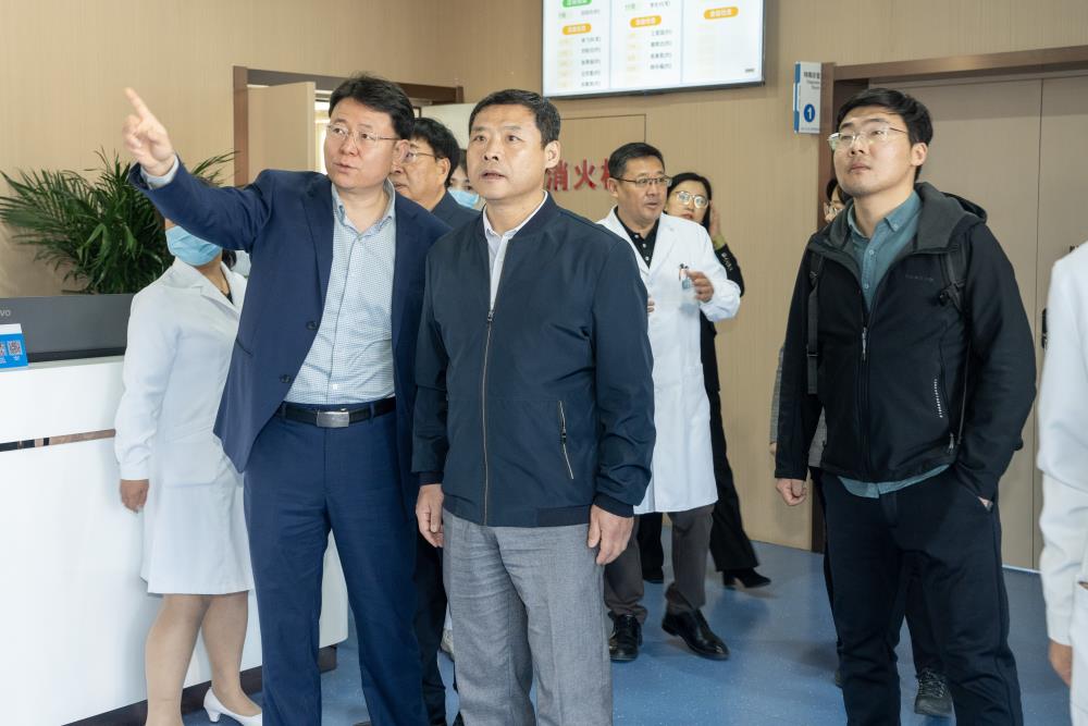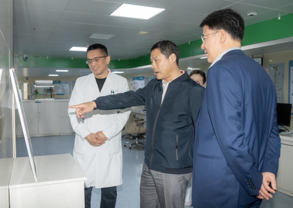 4月11日,国家卫生健康委卫生发展研究中心党委书记、主任付强,财务资产部部长、健康战略与规划研究室主任王秀峰,医药技术评估与创新发展部创新发展研究室主任助理张植晟莅临我院调研指导。付强主任对西安交大一附院榆林医院国家区域医疗中心建设项目表示充分肯定,认为“西安交大一附院榆林医院国家区域医疗中心建设项目进展明显,成效突出,值得期待”。