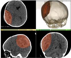 据了解,该患儿从床上不慎摔落致头部受伤,未引起家长重视,随后出现呼叫不醒,伴有恶心呕吐,精神萎靡等症状。遂来我院急诊儿科就诊,急查头颅 CT 提示,颅内巨大血肿,中线结构移位,脑组织受压明显。