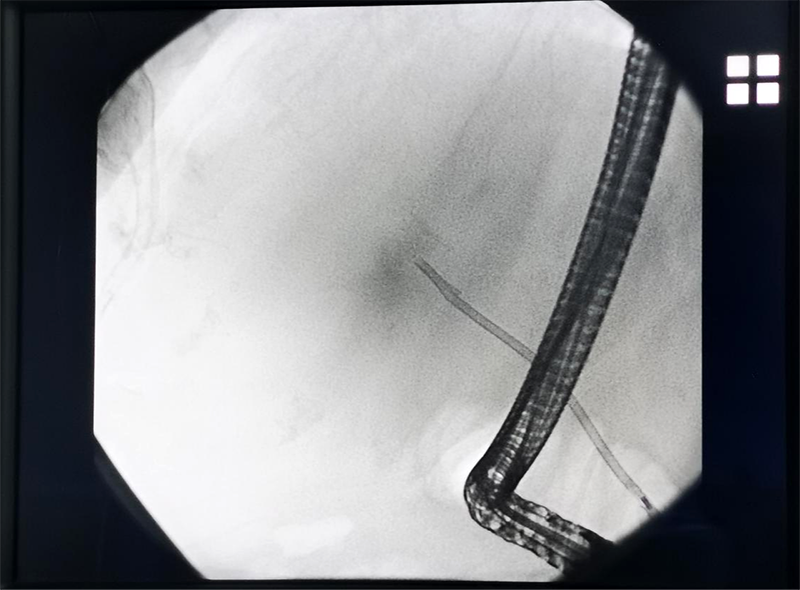 今年80岁的患者因“梗阻性黄疸”入住榆林二院肝胆外科,由于胰腺肿瘤侵犯胆总管至胆汁流出受阻,总胆红素高达287.57umol/L,患者皮肤巩膜黄染进行性加重伴瘙痒,需要尽快进行手术治疗解除梗阻。考虑老人年事已高,身体的基础病较多,患有高血压、糖尿病、肺癌化疗后等疾病,无法耐受腹腔镜或开腹等传统手术方式,遂邀内镜中心刘小玉主任医师会诊,共同研究诊疗方案。经刘小玉主任医师与肝胆外科反复讨论,严谨诊断评估,并和患者家属充分沟通后,决定为患者实施微创手术——ERCP术。