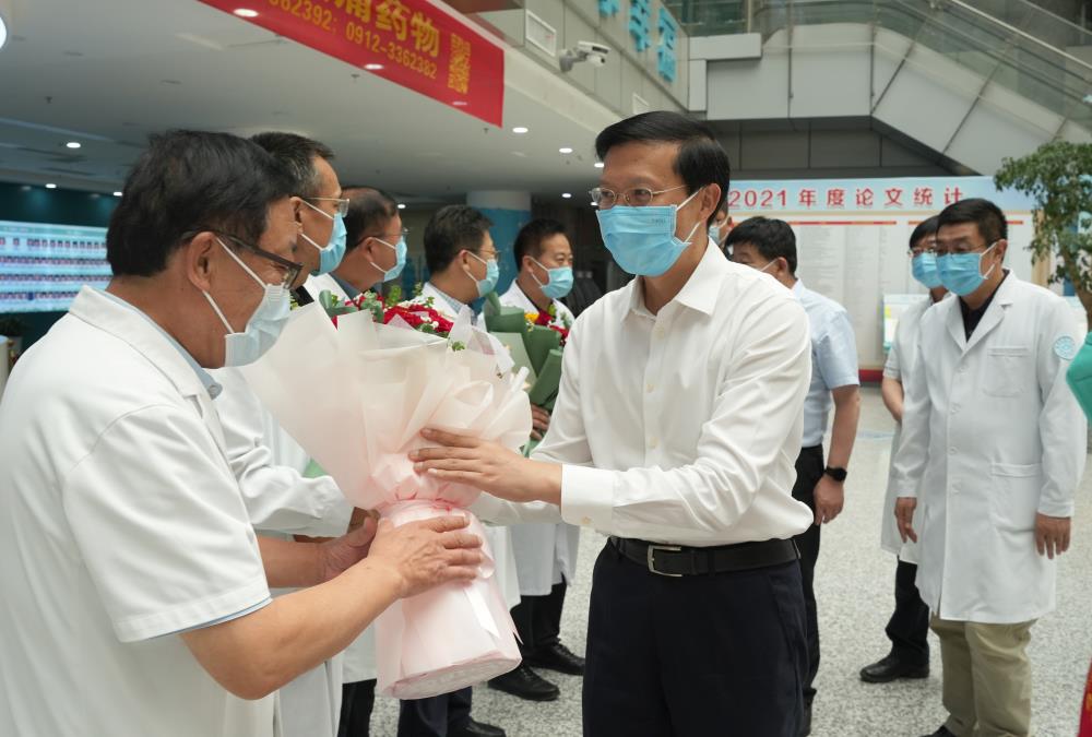 8月19日是第五个“中国医师节”,当天上午,市委常委、常务副市长陈忠,榆林市政协副主席、市卫健委主任高怀和一行到我院看望慰问一线医务人员代表,代表市委、市政府向长期奋战在疫情防控与防病治病一线的医务工作者致以节日的问候。榆林二院院长贺波,党委书记赵文玉,副院长杜光勇、白万祥,院务委员赵广裕陪同慰问。