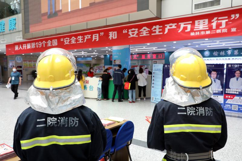 6月16日上午,榆林二院保卫科联合航宇路派出所民警在门诊大厅开展第19个全国“安全生产月”和安全生产万里行主题活动,围绕防火灾、防盗抢、防“医托”、防“诈骗”和反恐怖袭击等安全知识进行宣传咨询。