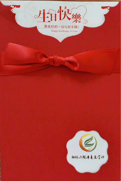 患者在住院期间适逢生日时,会送上“生日卡”一张,表达科室全体医护人员对病患的关怀,搭建一座通向患者和医护之间的桥梁。