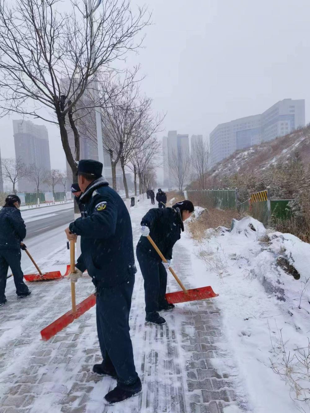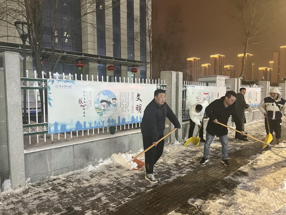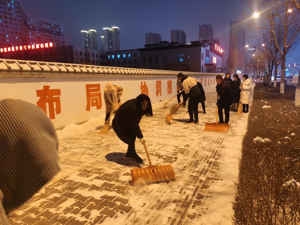 2月4日,榆林市区普降大雪,很快人行道都被一层厚厚的积雪所覆盖。晚间,降雪停止,西安交大一附院榆林医院以雪为令,通知已经下班回家的行政职能科室工作人员,按照医院提前制定的扫雪除冰方案,再战风雪。大家克服困难,紧急赶往医院,开展扫雪除冰行动,用实际行动扫出条条“平安路”,保障群众“医”路畅通。