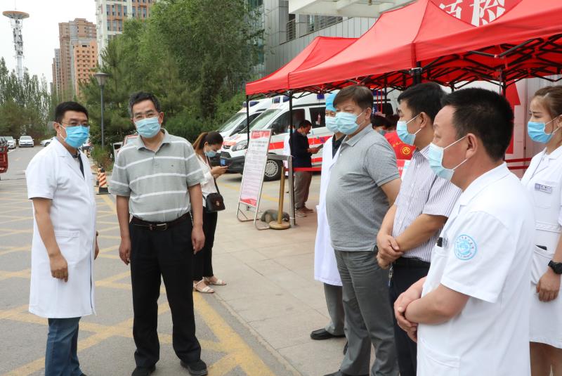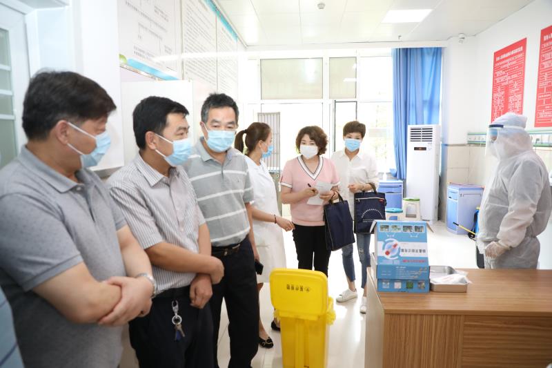 6月22日,陕西省卫生健康监督中心主任杨盈周、书记乔福星一行到我院督导检查疫情防控工作。榆林市卫生健康监督所所长万正平、书记李喜荣一同检查。