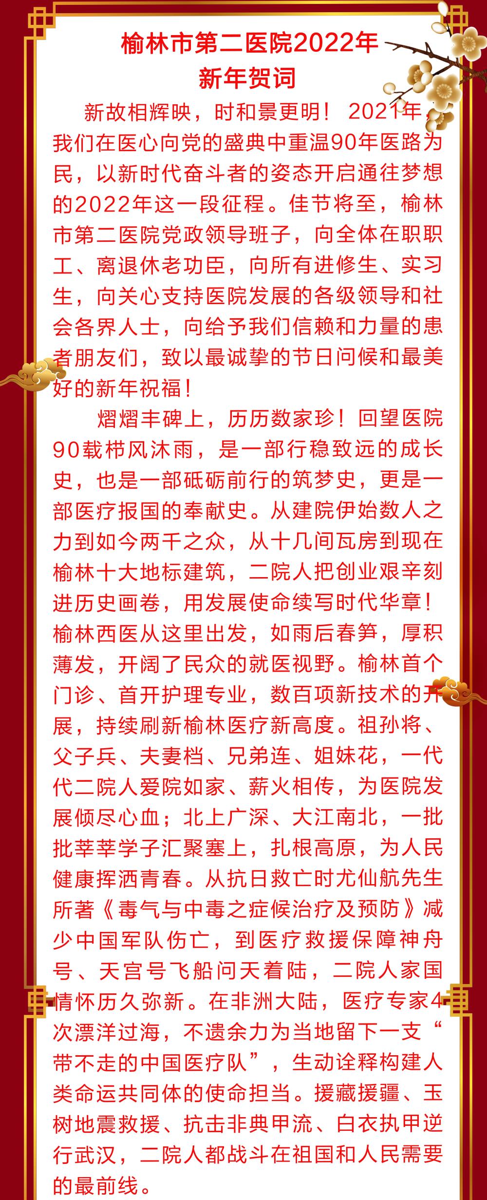 榆林市第二医院2022年新年贺词