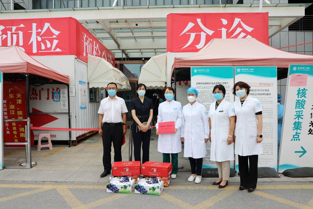 杨冰副行长一行先后走访了榆林二院门诊预检分诊、急诊预检分诊、急诊科、发热门诊、核酸采集点、驻机场核酸检测采样点,向坚守在疫情一线的医务人员送上节日的祝福,并为他们送去慰问品。