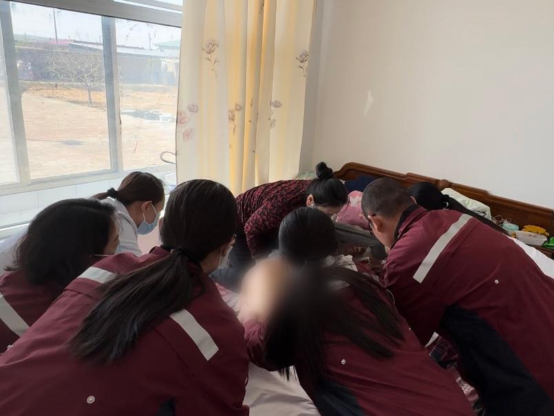 4月15日,西安交大一附院榆林医院宁养院医生、护师、社工协同重症党支部书记、重症医学科二病区副主任李静、副护士长白成艳前往距离榆林市区40公里外的患者家中,进行居家会诊并为患者送上所捐赠的防压疮充气床垫。