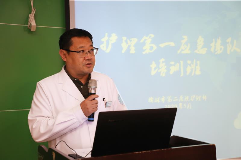 5月27日的开班仪式上,分管副院长张哲致辞,他勉励学员们要认真学习,深入思考,取得真经。并提出要求:学员要提高思想认识,切实增强卫生应急工作的责任感和使命感,尤其是在救护团队合作中要增强责任、明确任务、通力协作,全面增强应急护士的整体素质,着力提高我院应急护士在突发公共卫生事件救援过程中的应急处置能力,提高应急护士的专业技术水平和护理质量。