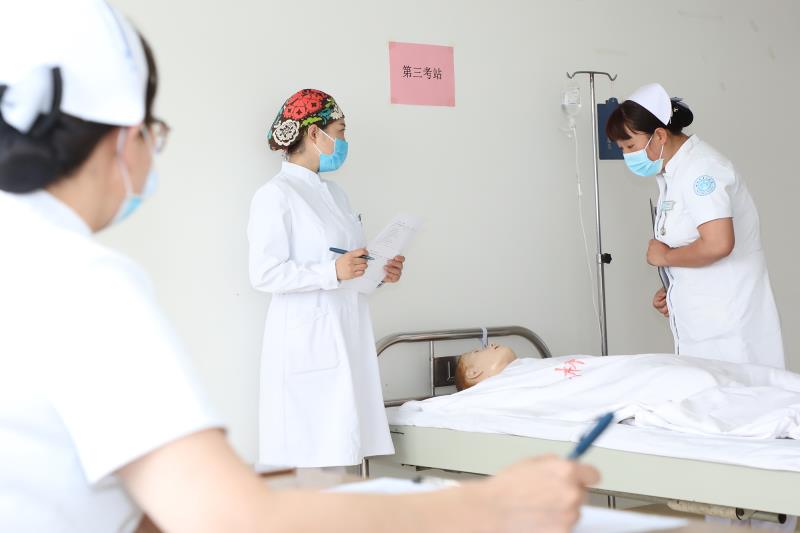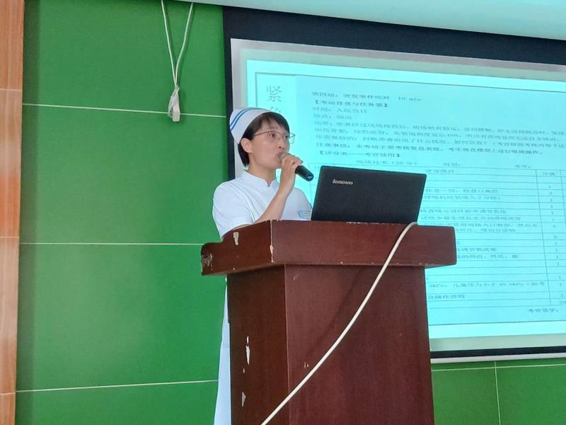 本次培训首次引入客观结构化临床考核模式(OSCE,通过设置一系列模拟临床场景的考站,对考生进行实践测试),并结合我院护理工作实际,构建OSCE考站,设计了骨折外伤急救、心脏呼吸骤停抢救、新冠患者护理等情景案例,分别构建了小组急救、入院评估、突发事件应对、问卷星理论考核4个考站任务,以5人一小组的团队合作模式完成站点考核。学员们沉浸角色,积极参与,圆满地完成了培训与考核任务。通过应用客观结构化临床考核模式,模拟临床场景来测试护士的急救技能和突发事件应对能力,实现了知识、技能和态度并重的临床能力评估,充分发挥了考试的功能。