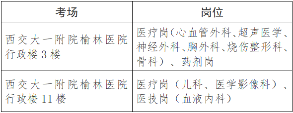 2.心理测试:西交大一附院榆林医院行政楼3楼大会议室(科研岗、医疗岗、药剂岗、医技岗-血液内科);