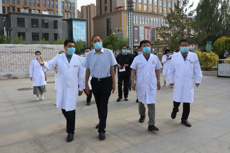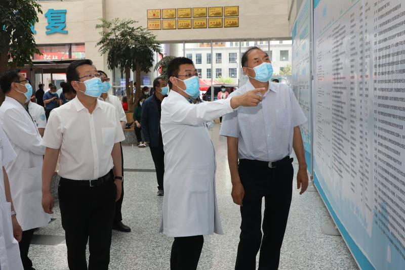 杜寿平一行先后详细查看了门诊预检分诊、脑科医院门诊、有声图书馆、国家消化病临床医学研究中心榆林分中心、联防联控指挥部等地,贺波院长就国家医保政策落实情况、疫情防控、学科建设、新技术新项目开展和高端人才引进等方面工作进行了汇报。