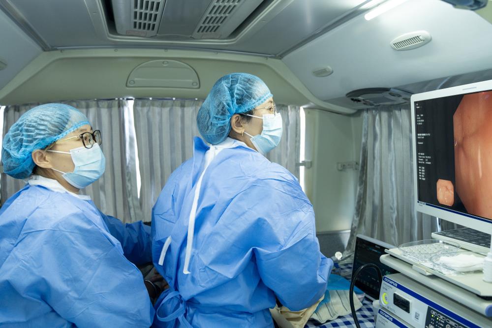 为进一步夯实“我为群众办实事”内涵,交大一附院榆林医院开通了两辆“健康直通车”,患者只需登车即可完成包括胃肠镜检查在内的所有项目,享受“一站式”胃肠镜检查服务。交大一附院榆林医院消化内科主任卢桂芳,吴堡医院消化内科特聘主任白艳霞在健康直通车及子洲分院胃镜室开展14例胃镜检查、3例肠镜检查,帮助患者及时“排雷”,进行科学诊疗。