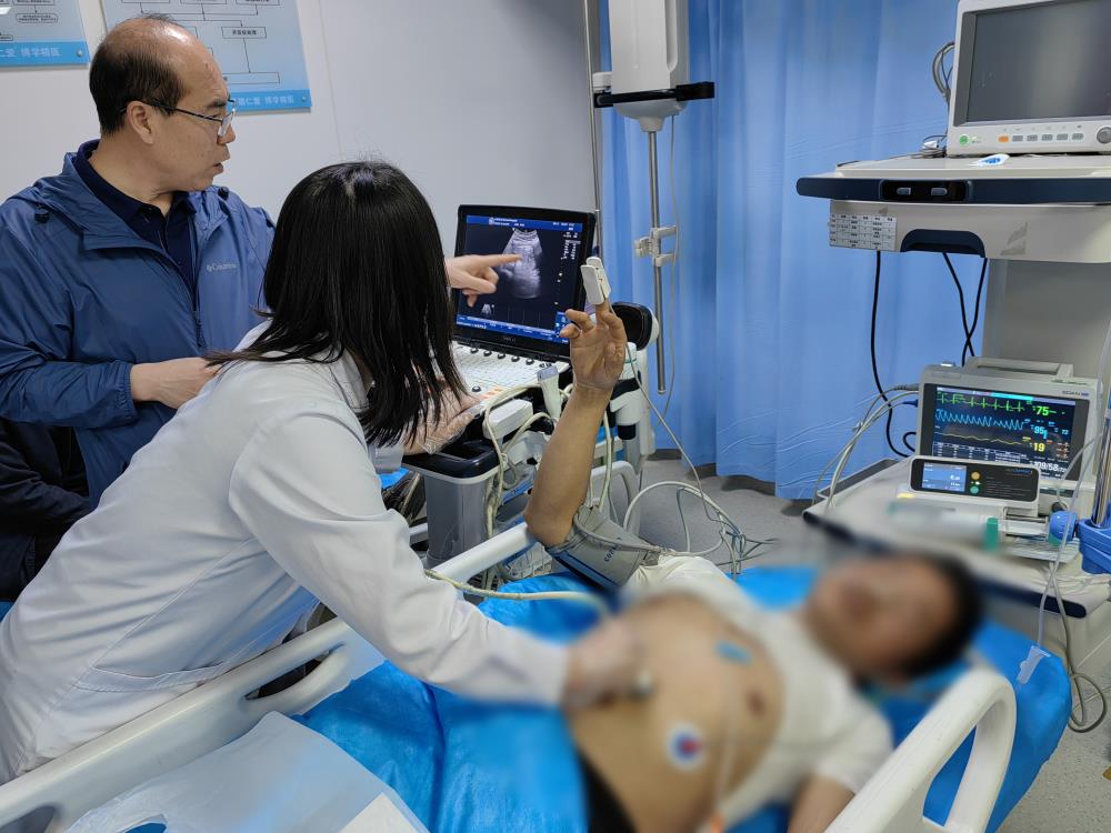 到了急诊医学科,患者刚刚入院,白纪刚教授顾不得更换工作服,便紧急投入了工作状态,询问患者病史,查看患者状态。经检查,判断该患者因车祸致胰腺断裂、合并腹腔出血,遂当机立断准备紧急手术抢救。