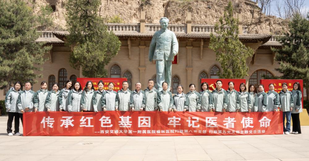 为深入贯彻党的二十大精神,不断推进习近平总书记关于党纪学习教育的重要讲话和重要指示精神,进一步落实我院《党纪学习教育方案》的落实,促进医院党建与业务深度融合,4月26日,西安交大一附院榆林医院行政第八党支部、行政第九党支部赴米脂杨家沟革命旧址联合开展“传承红色基因 牢记医者使命”主题党日活动。