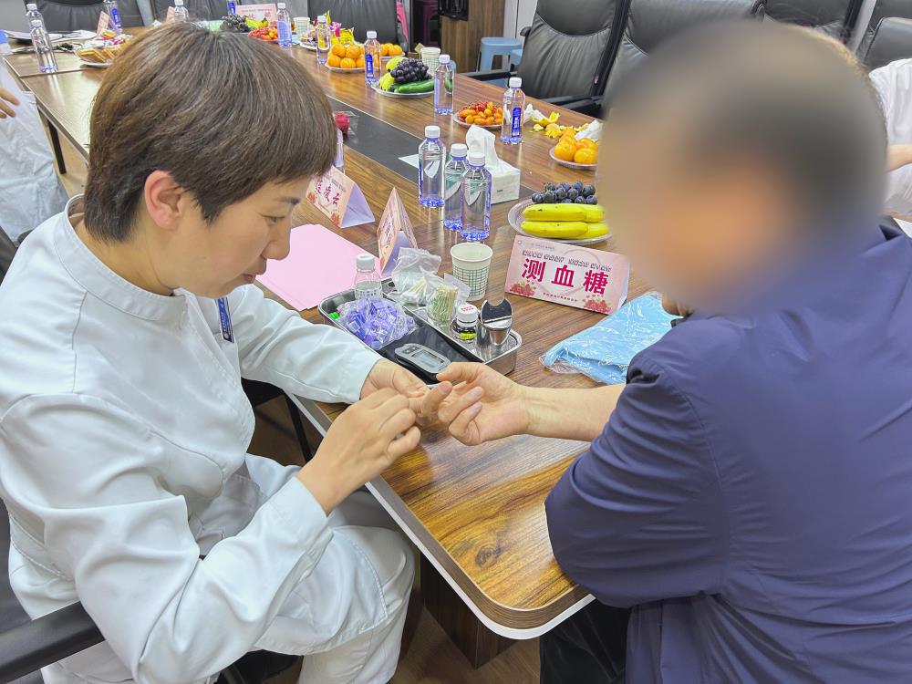 活动中,护士们为前来参加活动的患者测量血糖、血压,了解患者的病情及造口状态。