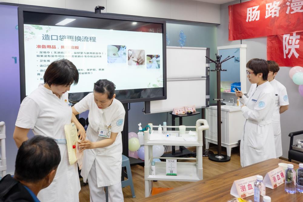 国际造口治疗师林娜与西安交大一附院普通外科护士聂卫红老师共同对造口袋的更换流程进行讲解并演示,让病友及家属们更直观的学习造口袋的更换流程。