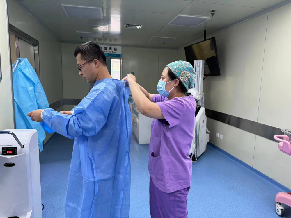 在新生儿科医护共同筹划下,各位家属来到了新生儿科的大门口,在进入病区前为了避免交叉感染,所有家长进行了手卫生、穿隔离衣、戴口罩、帽子、鞋套等流程。新生儿科主任刘增芳、副主任宋彩虹等医护人员就患儿的病情和家属的疑虑进行一对一、面对面的答疑解惑。小小的行动像一根纽带,极大地缓解了家属的焦虑情绪,把患儿、家属和医护的心紧紧连结在一起,像一束光,照亮了每个家庭前行的路。家属们对这样的活动给予了高度的肯定和赞扬,也希望多举办此类型活动,让家属与宝宝近距离接触,让住院的宝宝感受到来自爸爸、妈妈的关心与爱护。