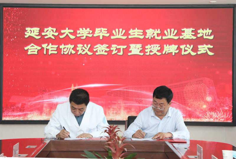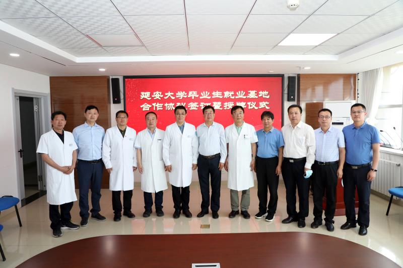 5月28日,我院与延安大学举行毕业生就业基地合作协议签订暨授牌仪式,延安大学党委副书记田伏虎教授、延安大学学工部副部长、就业指导中心主任张翔、延安大学化工学院院长张琰图教授,延安大学医学院副书记罗世乾、教学办主任高枫、延安大学就业指导科科长赵鹏飞和我院领导班子、部分职能及临床科室负责人、延安大学毕业生代表参加签约揭牌仪式,共同见证这一重要时刻。