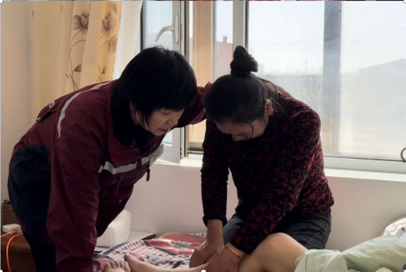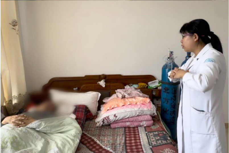 4月15日,西安交大一附院榆林医院宁养院医生、护师、社工协同重症党支部书记、重症医学科二病区副主任李静、副护士长白成艳前往距离榆林市区40公里外的患者家中,进行居家会诊并为患者送上所捐赠的防压疮充气床垫。