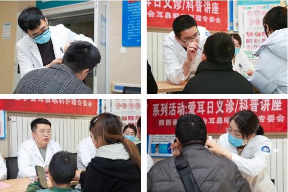 耳鼻咽喉科刘峰主任医师、白志刚副主任医师、王咪主治医师、李锦荣主治医师以及护理人员为前来咨询和检查的患者提供免费的耳部检查和听力测试,传递科学爱耳护耳、听力康复相关知识。各位专家为耳部疾病患者进行免费问诊,耐心询问每一位患者的症状和生活习惯,仔细进行耳部检查,并给出专业的诊断和建议。