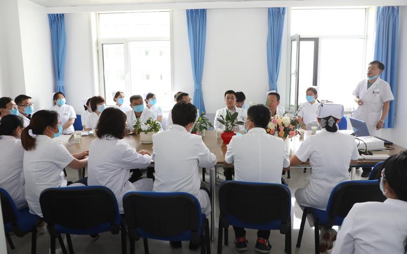 贺波院长充分肯定了神经内科二病区的发展思路,即与神经内科一病区优势互补、错位发展的定位与医院的发展思路是相吻合的。贺波院长指出,脑科医院的成立挑战与机遇并存,要围绕建设“陕甘宁蒙晋交界具影响力的医学中心”为目标,以脑科医院的成立为契机,以神经内科二病区现有的专业优势为突破口,制定科学的发展规划。要找准学科发展的切入点,保持原有的专业优势不丢,不断开拓其他亚专业,瞄准国内一流,区域内领先,高起点定位,通过1——2年的打造,让科室发展再上新台阶;要加强人才梯队建设,采取请进来、走出去等方式,优化人才队伍结构;要加快业务能力提升,与神经内科一病区形成错位发展、多点突破,实现医院神经内科综合实力的提高,从而带动脑科医院的发展;要“打造医教研为一体的一流科室”,在科研和学术方面取得突破;要创新发展,加强医院文化内涵建设,打造有温度的科室。以医院支持重视为动力,抓实做好科室发展和规划,继续鼓足干劲,紧跟医院快速发展的步伐,打造核心竞争力,为患者提供更加高品质的医疗技术和服务水平。